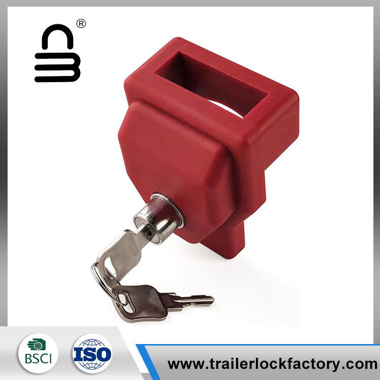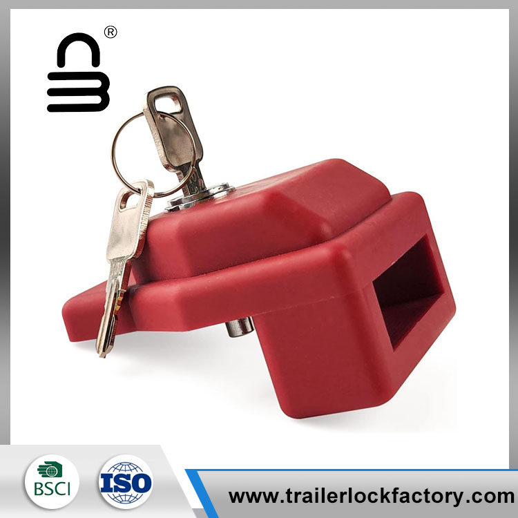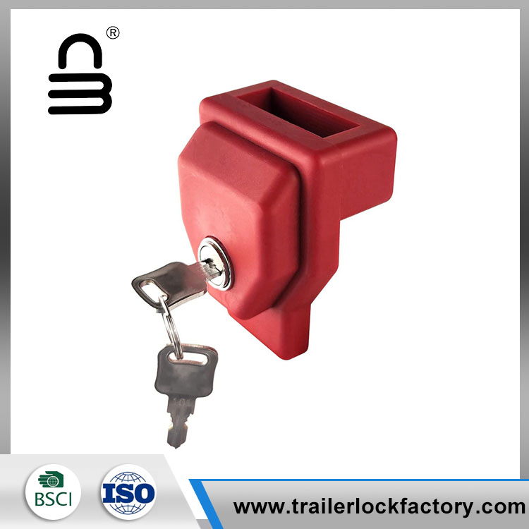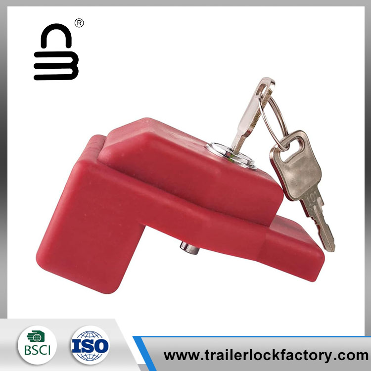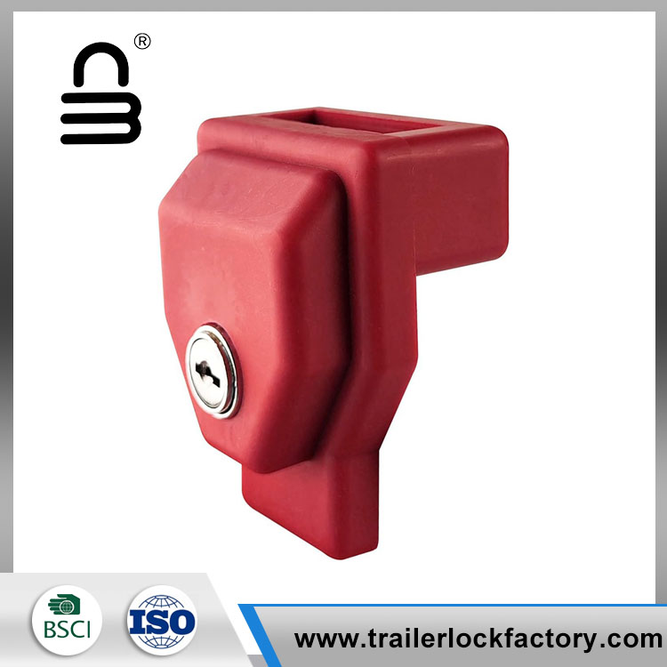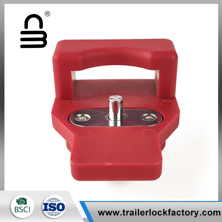 ग्लॅड हँड ट्रेलर लॉकआउट हे अंगभूत की लॉकसह (एकसारखे चावी असलेले) दृश्यमान लाल प्लास्टिक आहे.